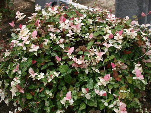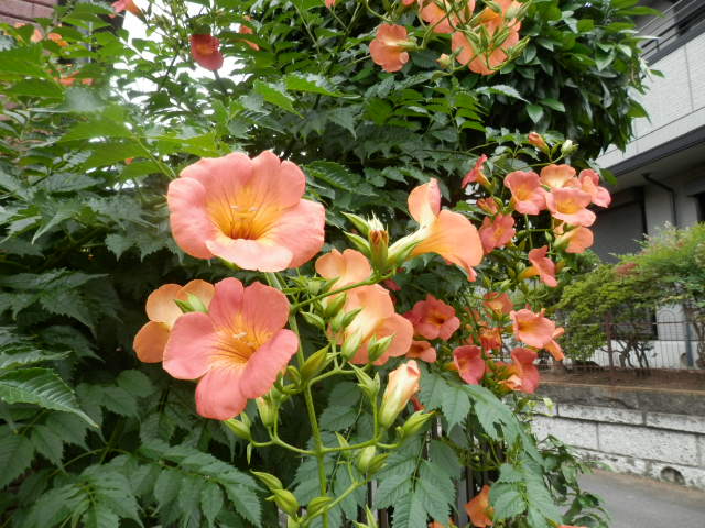 いまが見ごろ「花かずら」が街の民家庭先・・・。 |