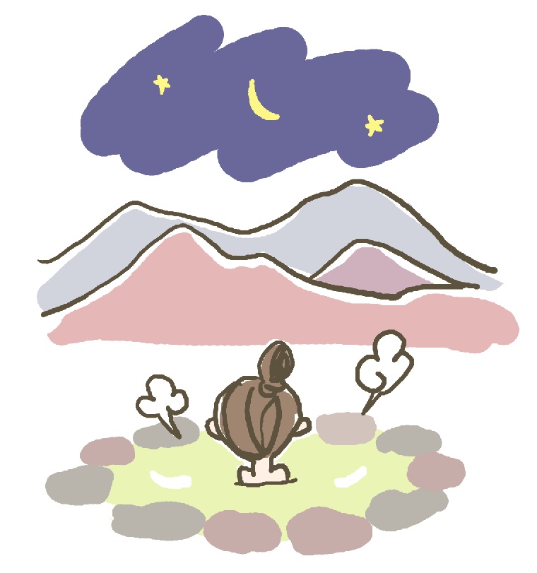 その絵は「ケミカルガーデン」とゆう名前で、はがきサイズの紙に水彩絵の具で描かれていて 長いまつ毛の機嫌の悪そうな月、夜空の割れ目には青い巨人 地面の割れ目からは、数本の腕がゆら〜っと伸びていました。
