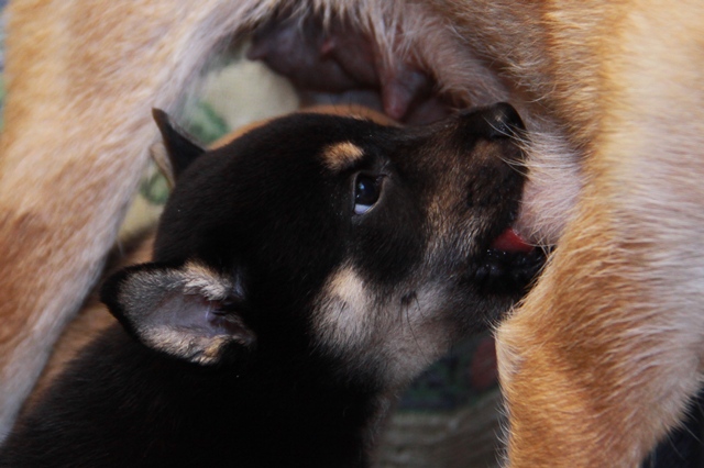 母犬;メイちゃん ここまで4チビチビにオッパイを上げてまさに身を削って子育てをしてきたのでチョット疲れ気味。