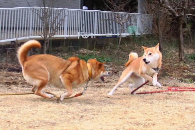 お馴染みの こころ(赤柴)と セナ(白柴)のお嬢様
