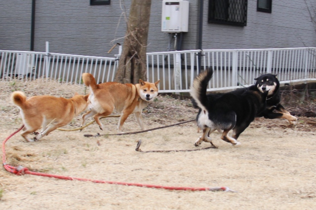 ロングリードで走り回るとワンコ達の息が白い(*^_^*)