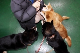 店内には 白柴やワイマナラー:シオンくん などオヤツを楽しむ先客ワンコ達