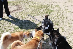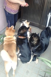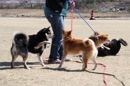 最初はコントラストが合う2柴で・・・4柴リードを持つスタッフさんの違和感ない姿 (#^.^#)