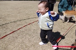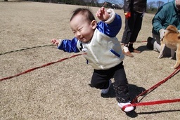 公園でも遊んで引き揚げ〜〜 珊瑚が追いかけているのは