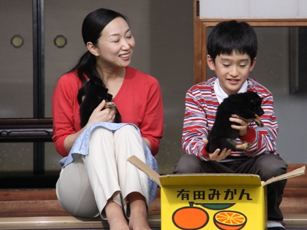 成長期の2豆柴は元気でヤンチャそうでしたが無難に挨拶終了し、本番では子役さんとは和気あいあい