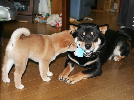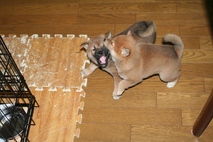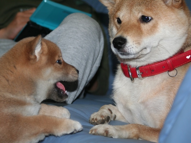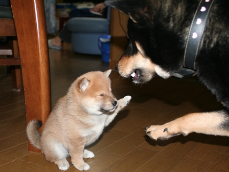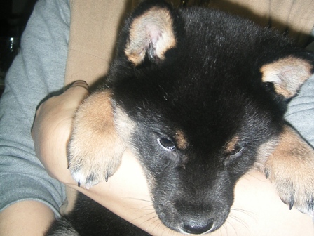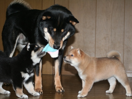 里親さんの家族全員で子犬を見て頂いた結果、珊瑚に一番良く似ている3番目のメス(仮名:ブルーちゃん)が決まりました。