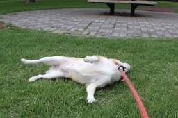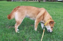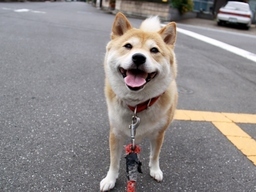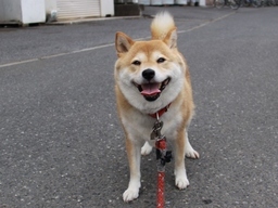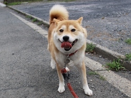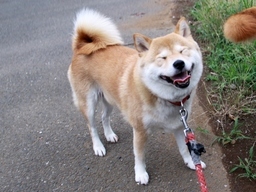 お出迎えの時の嬉しそうな顔・・・ミミはペッタンコ、尻尾ブンブンです。
