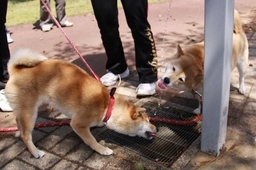 オヤツの後には 給水タイム〜です。