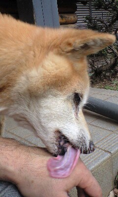 ベルちゃんは慣れていない様子で、下の方から…お顔に当たってしまいます。