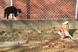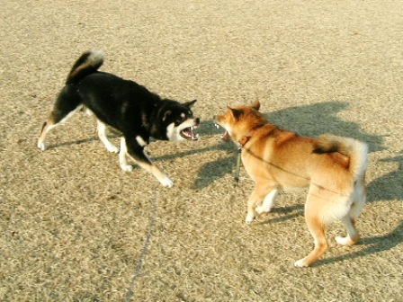 サンカーの練習見学途中 ニャンコに威嚇始めた珊瑚