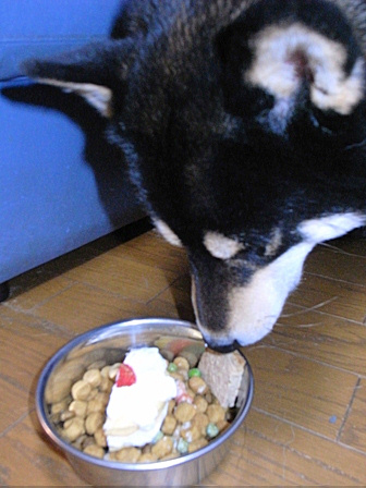 手作りは不可能・・・近くのドッグCaféのケーキを調達致しました。