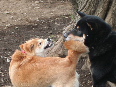 ラン子ちゃんが珊瑚や銀牙の後ろに隠れて