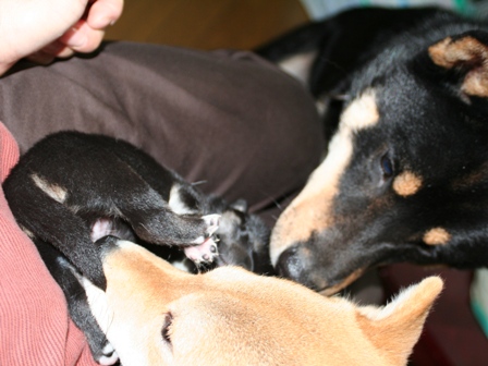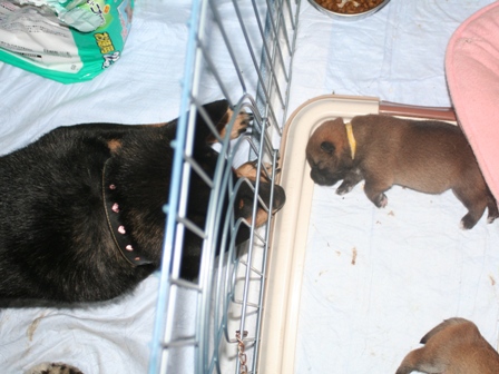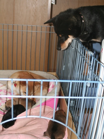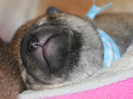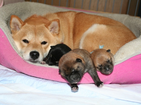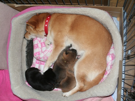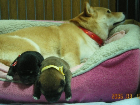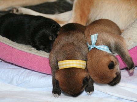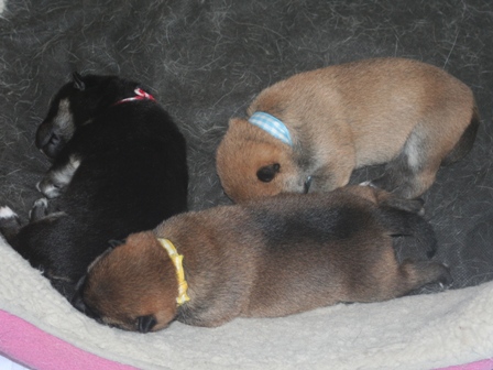子ワン仔達は生後10日で生まれた時の3倍の体重へ巨大化! それぞれの体重は(前日比) 黒♂740g(+60g) 胡麻♀750g(+80g) 赤♀635g(+60g) そして、子ワン仔達の匂いが仔犬の匂がしていきました! 生まれたばかりの頃は羊水&胎盤の匂いと言うか・・・ん〜生っぽい匂い?がしていたのですが、オッパイの匂い+の仔犬の匂いです。 目に見えない所でも成長してます。