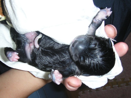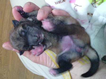 予定日よりも4日早く+あっ!っと言う間に始まった出産にアタフタした昨日ですが、心配していたよりも安産で、家族が全員揃っている時に産んでくれた珊瑚ママは、これまた思っていた以上に、子育てを一生懸命にしています。ホントに親孝行です。 頭の片隅には、難産や○産の場合の対応や育児放棄したらどうしようとか、色々少しは考えていましたが、全てが良好に進み、これ以上無いお産だったと思います。 残された課題は「犬舎名」くらいでしょうか。大体の候補が合って絞り込み段階なので、早々に申請手続き予定です。 まだ少々迷いがあるのですが、それは週明けまでには決定します。 さて、今朝の体重測定をしようとしたら、まだまだオッパイに吸い付いている3柴ですが、珊瑚をおっ○っこ&う○ちに行っているスキに測定しました。 第一子(写真左) :黒柴♂が+25g=260g 第二子(写真中央):赤?胡麻?♀が+15g=270g 第三子(写真右) :赤柴♀が+10g=240g でした。 その後、お腹がポンポコリンになり寝るを繰り返していますので、更に成長している事でしょう。 銀牙も我が子を考え深げに?見たり、鳴き声が聞こえると素っ飛んで見に行きます。残念ながらまだ触っていませんが・・・??? 銀牙に触らせてと言うか・・・舐めさせて良い物でしょうか? 銀牙も珊瑚もお散歩時には、他のワン仔との接触は避けていますが、もし接触したら?どうすれば?ご存知の方!教えて下さい。