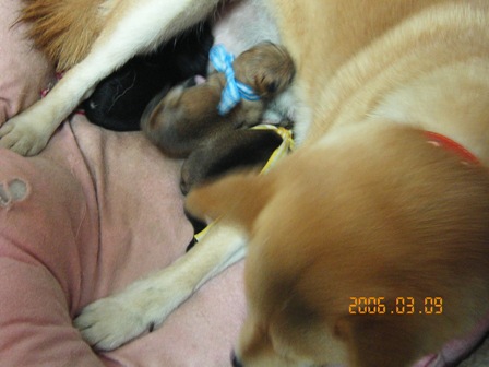 珊瑚はほとんど授乳や排泄の処理に従事して、時間や子ワン仔の様子を見て、排泄の為にお散歩に連れ出そうとするのですが、すっごく気にして、玄関ドアから公園(60m位)までダッシュ! すかさず・・・してダッシュで戻って来て、子ワン仔の確認!!! もう子ワン仔のお世話は心配有りません。逆に珊瑚の体調が気がかりです。でもそれも過ぎた心配でしょうね。珊瑚ママ頑張ってね! 週末はちょっと本州を離れて北の離島まで行かなくてはなりませんので、子育て日記は妻が付けている日記をもとにホワイトデー頃に更新予定です。